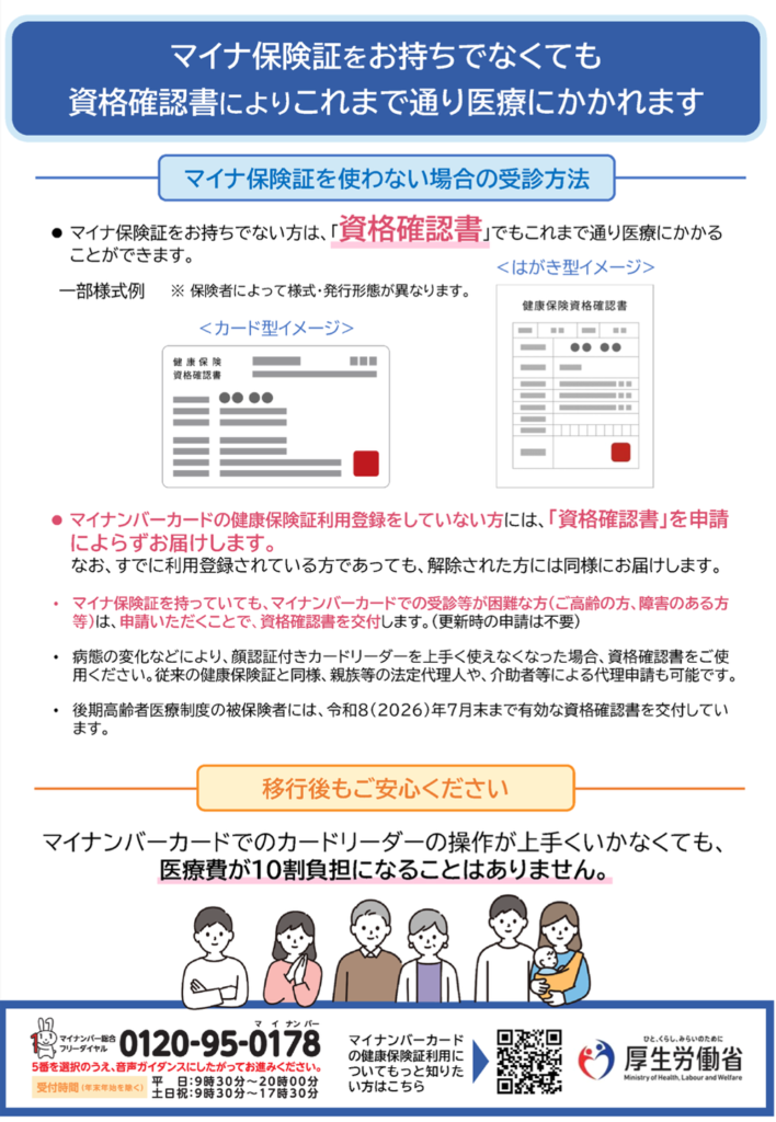 マイナ保険証を作っておらず、まだ手元に資格確認証も届いていない方も見受けられます。